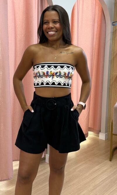 SHORT ALFAIATARIA PREGAS PRETO