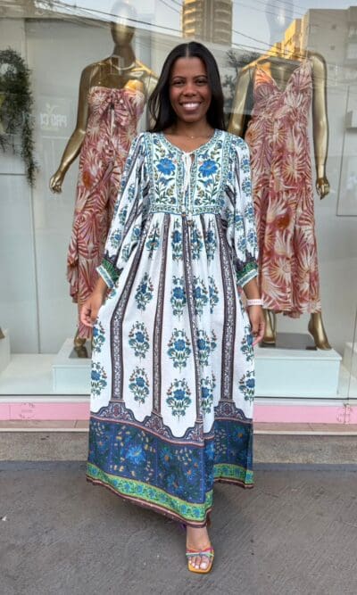 VESTIDO MIDI ALÇAS BORDADO RAFIS