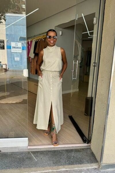 VESTIDO MIDI ALÇAS BORDADO RAFIS