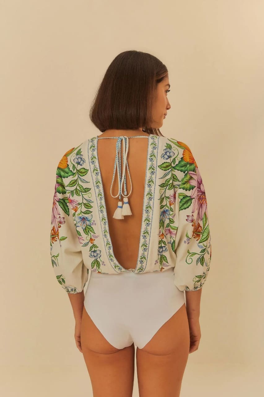 Body estampado delicadeza de fruta. com decote redondo e alças finas, esta peça é a definição de frescor para os dias quentes. o tecido leve proporciona conforto, enquanto a estampa traz um toque único e cheio de personalidade. ideal para um passeio casual ou um encontro especial. esta é uma peça exclusiva da coleção FARM RIO original – alto verão 25.