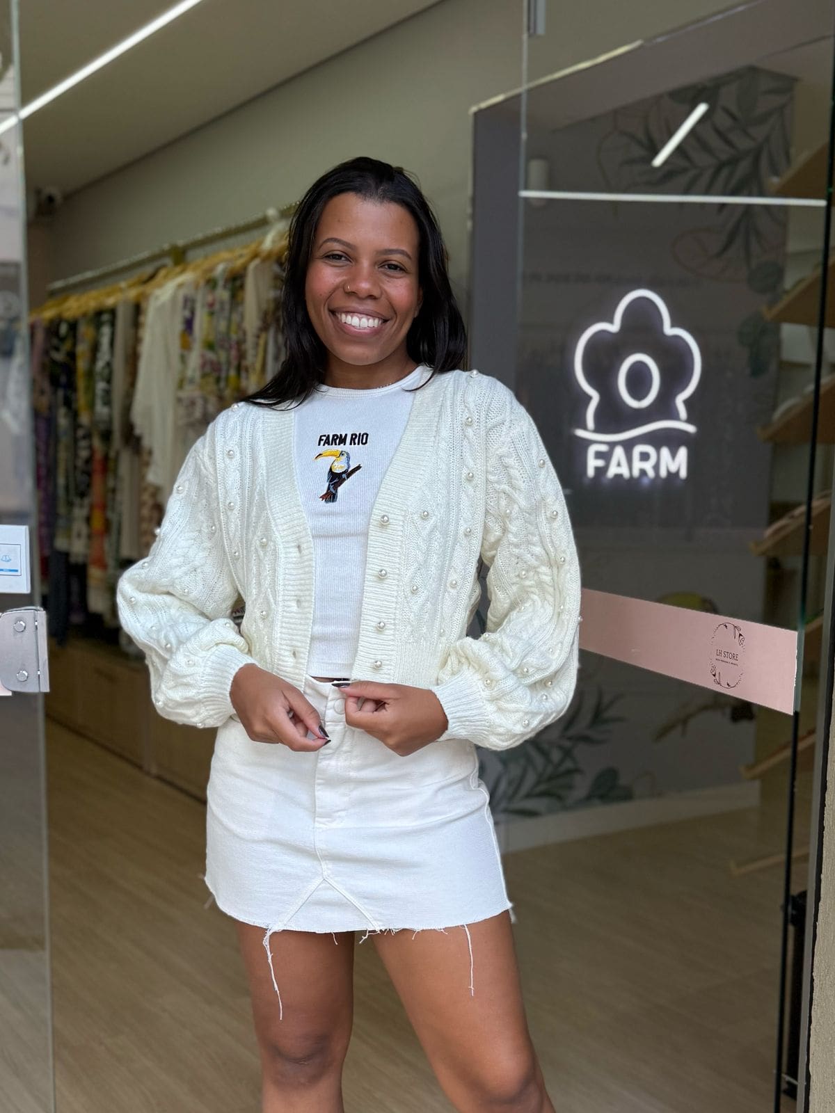 CARDIGAN TRICOT BORDADO PÉROLA FARM