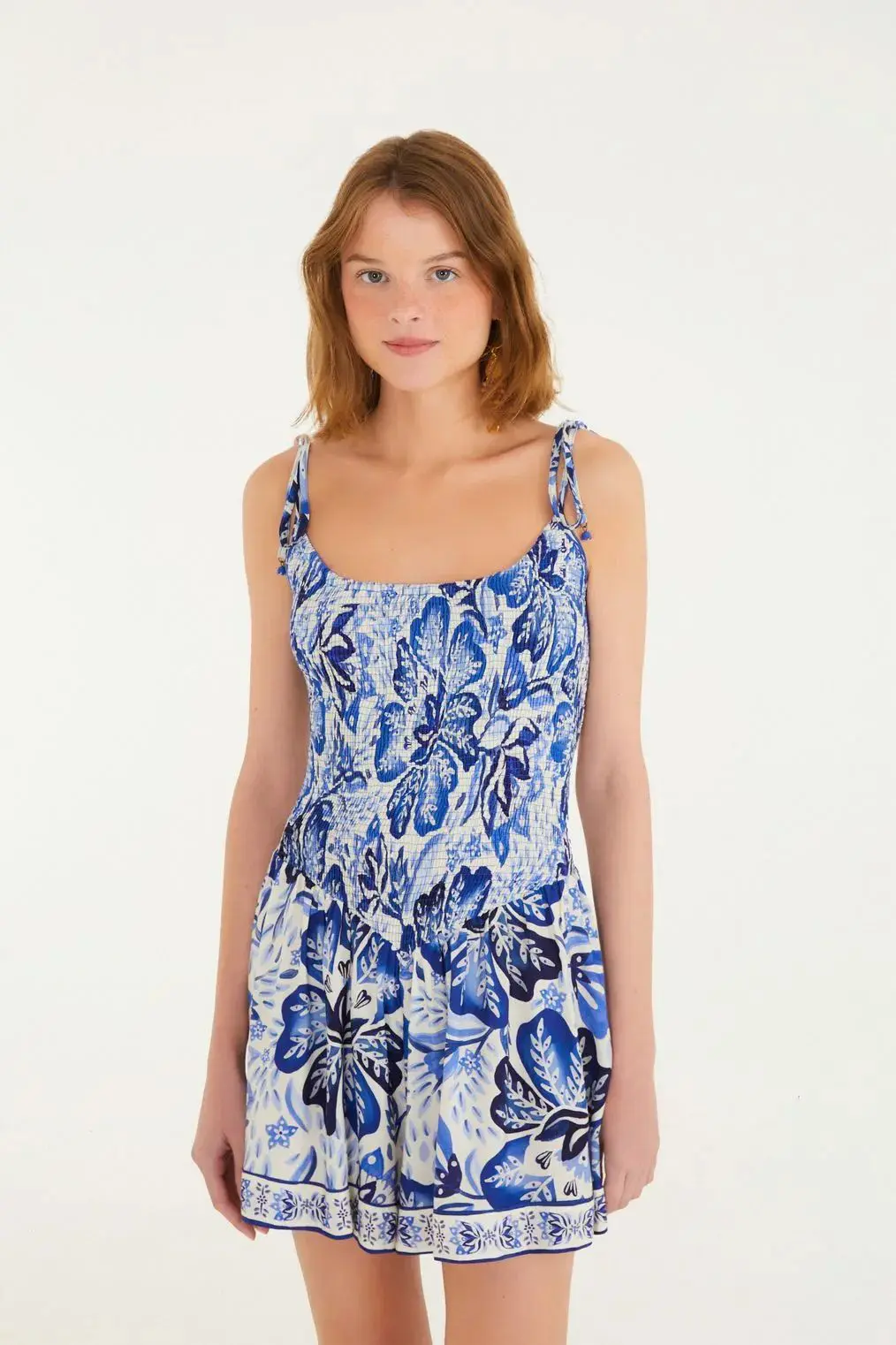 Macaquinho lastex manga estampado paraíso de flor. com decote quadrado e alças largas, o modelo conta com mangas curtas levemente bufantes e detalhe em lastex no busto, garantindo conforto e ajuste perfeito. ideal para ocasiões casuais, a estampa marcante torna cada momento único. FARM RIO original – verão 26.