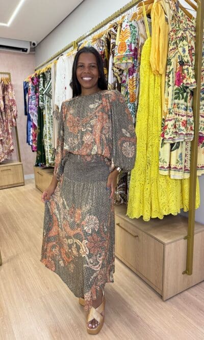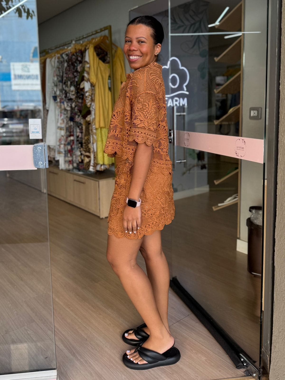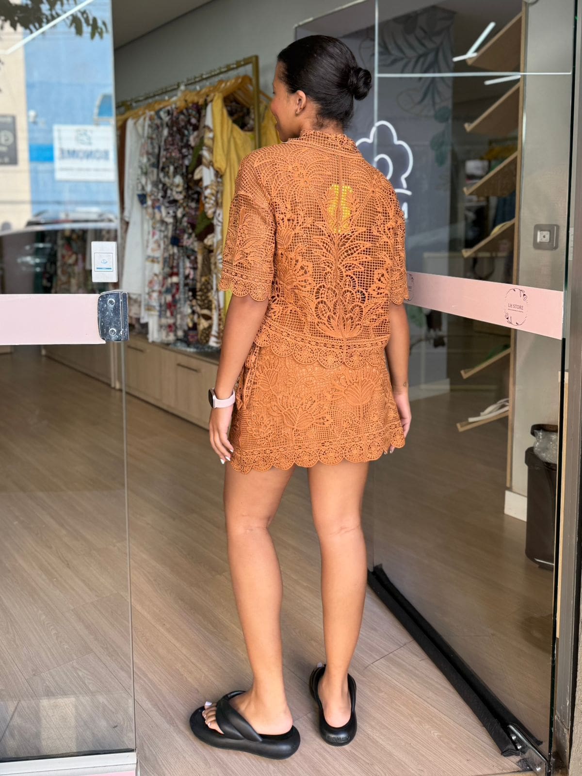 Saia guipure natureza selvagem. com design único, a saia traz um toque artesanal através do guipure, um tecido delicado que se destaca pela textura rica e acabamentos refinados. o corte moderno proporciona um caimento fluido e elegante, ideal para ocasiões casuais e encontros especiais. FARM RIO original – alto inverno 25.