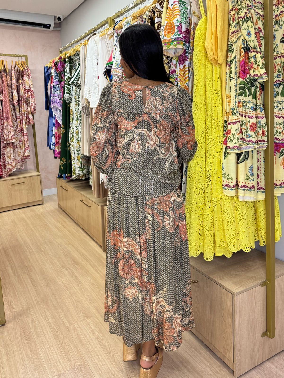 A Saia Midi Estampa Vitral une sofisticação e leveza em um design que valoriza o movimento. Sua padronagem exclusiva adiciona um toque de arte ao look, enquanto a modelagem fluida traz conforto e versatilidade. O comprimento midi equilibra elegância e modernidade, tornando a peça ideal para diversas ocasiões, do trabalho ao fim de semana.