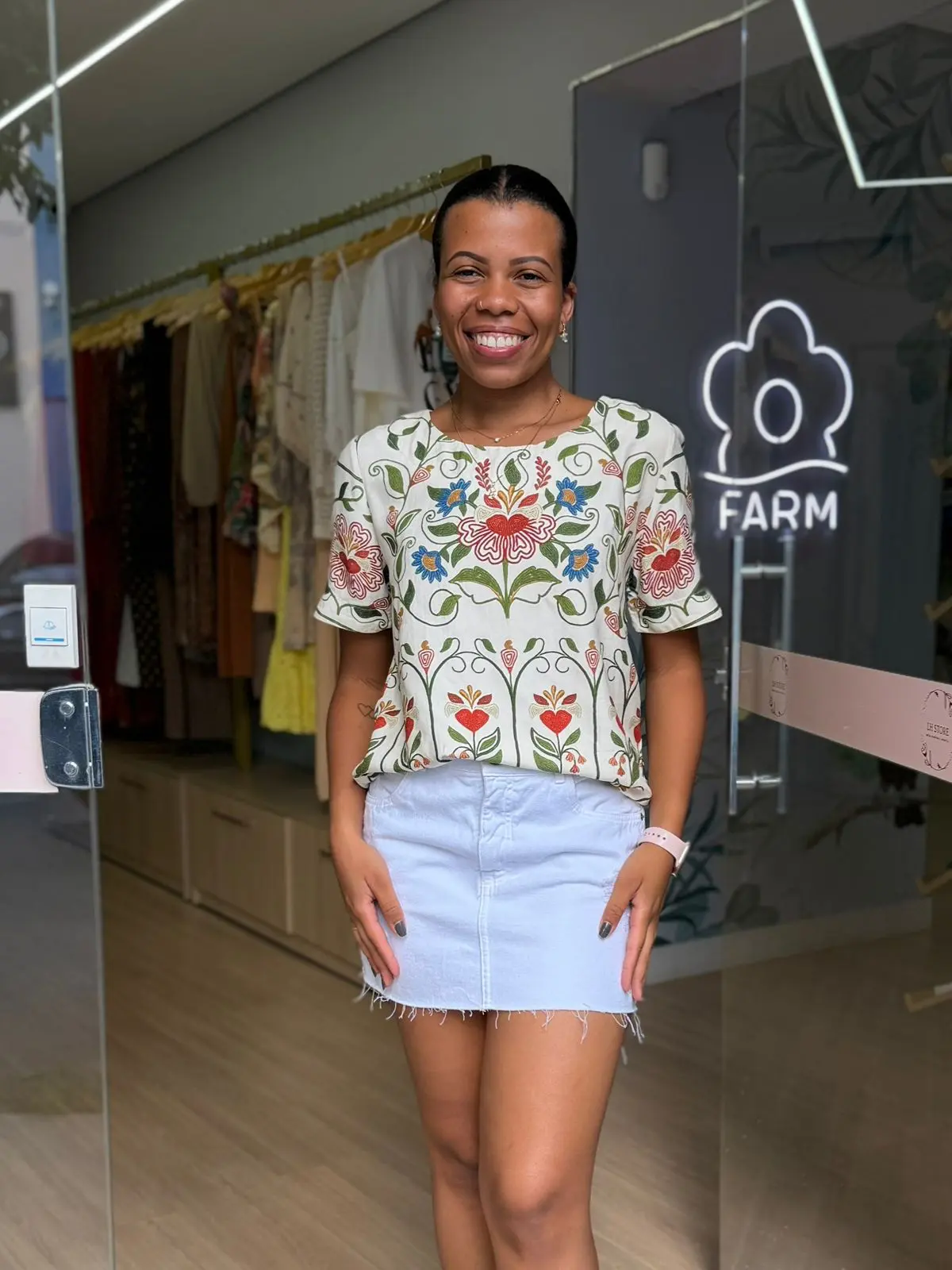 T-shirt estampada jardim beleza. essa peça traz um design casual e alegre, ideal para todas as estações. com decote redondo e mangas curtas, esse modelo oferece conforto sem abrir mão do estilo. perfeita para um dia no parque ou um passeio descontraído pela cidade. FARM RIO original – verão 26.