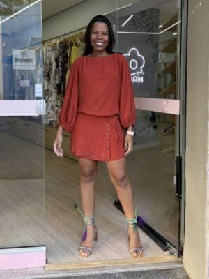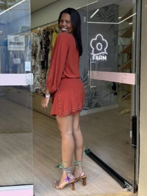 O Vestido Curto Tachas traduz a estética easy-chic com detalhes que enriquecem o visual. A aplicação de tachas na saia insere um toque contemporâneo à peça, enquanto a silhueta reta garante versatilidade e conforto. Ideal para transitar com elegância entre diferentes momentos do dia!