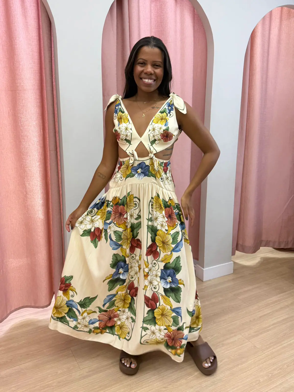 VESTIDO MIDI ALÇAS BORDADO RAFIS